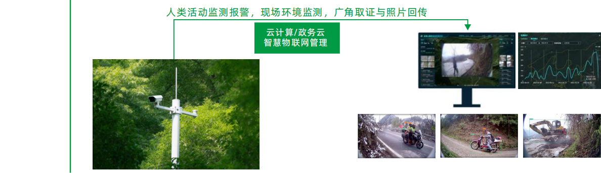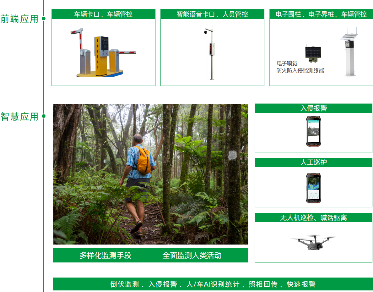 一体化智能前端,它集AI识别、声光宣传、自动取证、流量统计四大功能于一体,实现7*24小时无人值守,全面提升人类活动监管效能与公众生态保护意识。